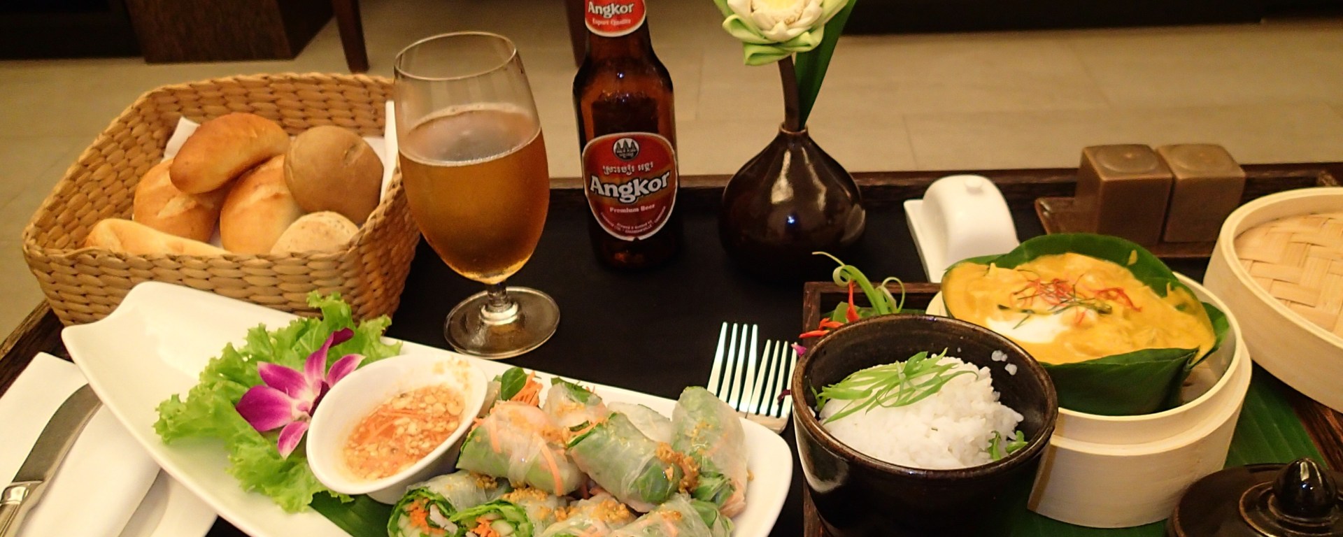 Dining on Cambodian cuisine, in-room at the fab Belmond La Résidence d’Angkor