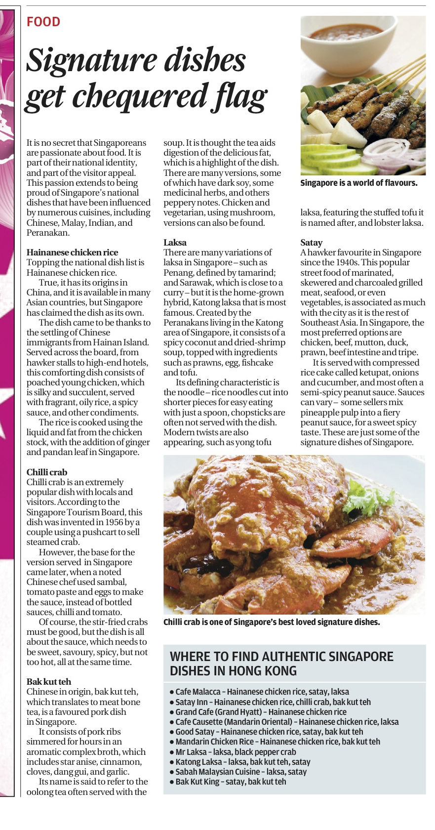 This article, first appeared in South China Morning Post as, Signature dishes get chequered flag (tie-in with Grand Prix story).