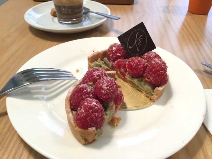 Raspberry, passionfruit & pistachio tart from Maison Eric Kayser