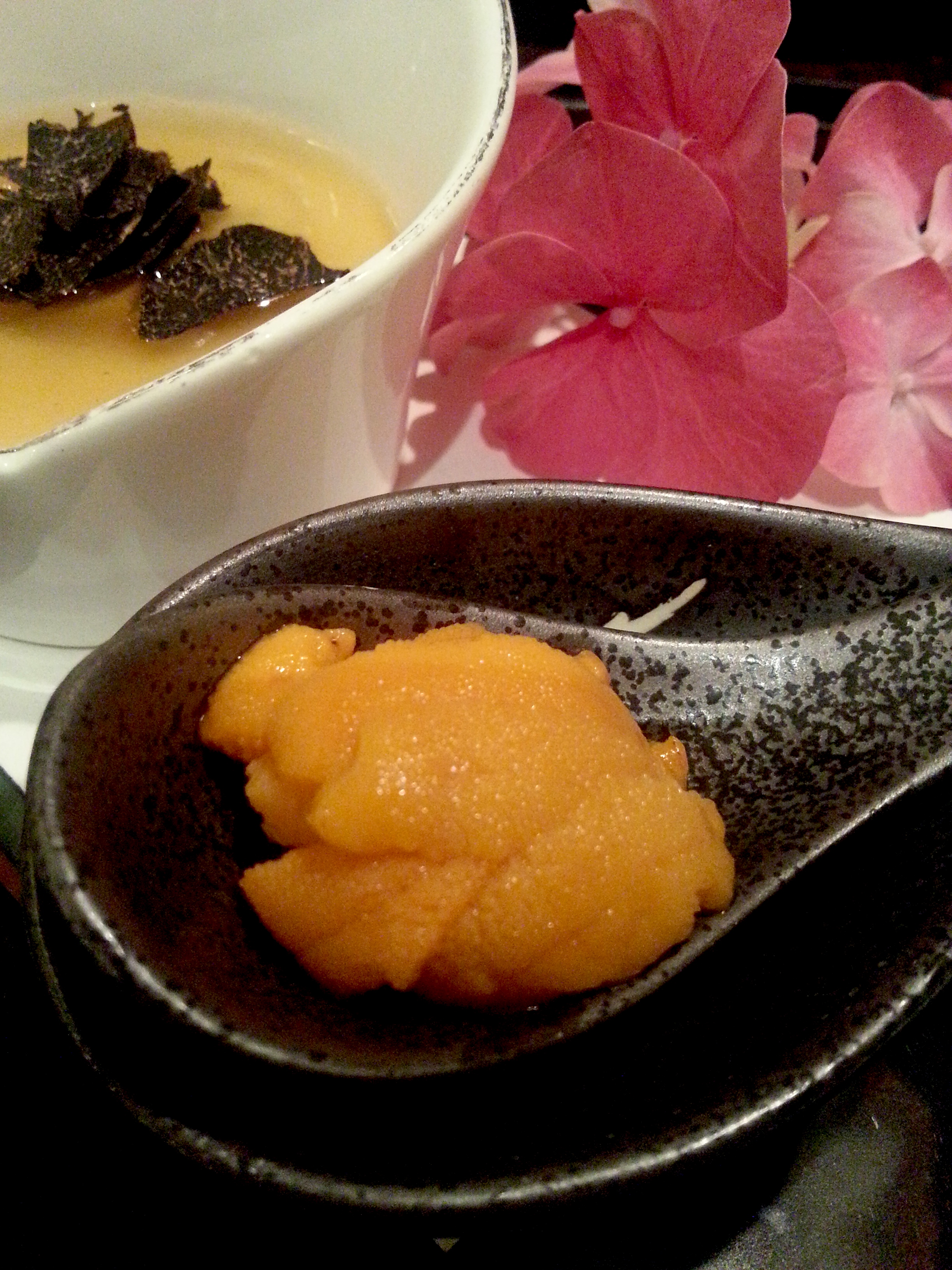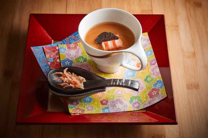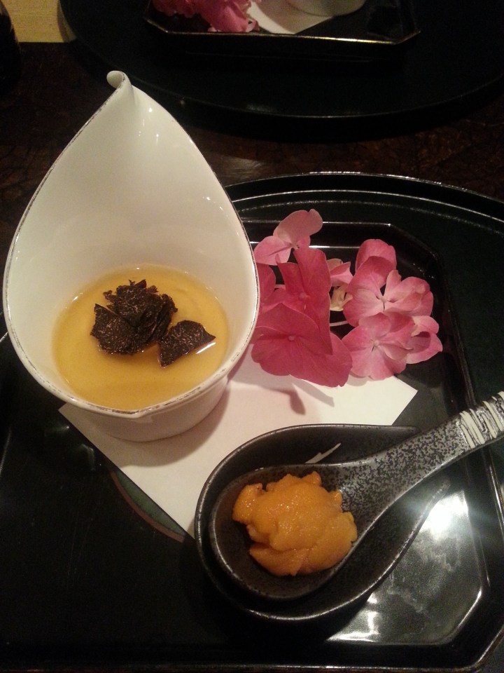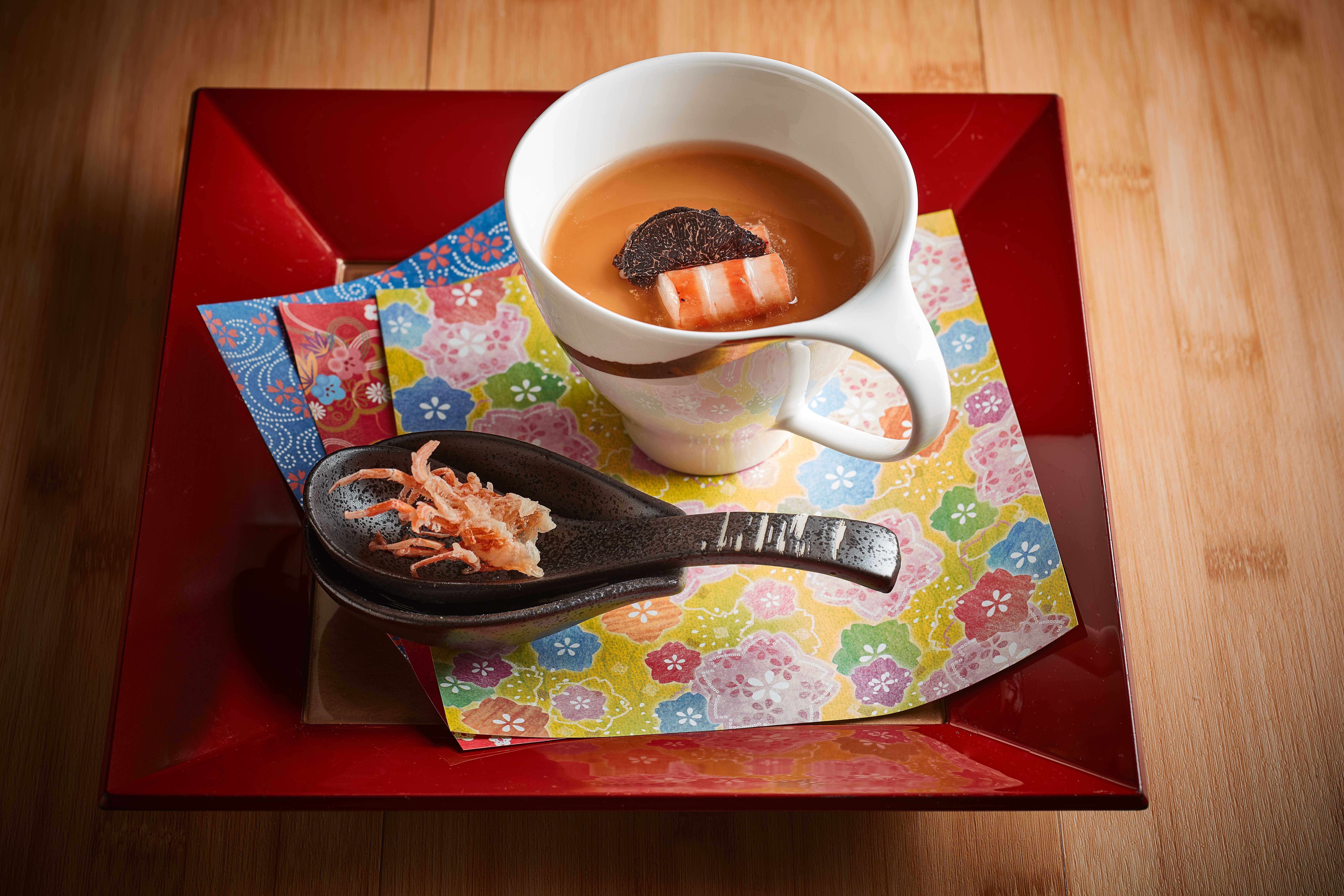 Another signature, Shrimp bisque custard with black truffle sauce (Nadaman image)
