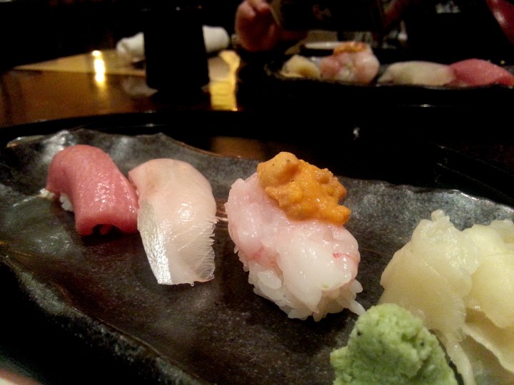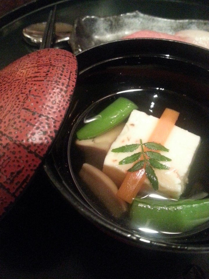 Simmered live lobster with soybean paste sauce – perfectly cooked (Nadaman image)I was also curious to try some sushi, if only all sushi tasted this good – note the individual grains of rice – click to enlargeWe finished with clear soup, loved the attention to detail