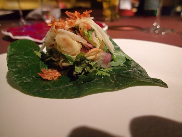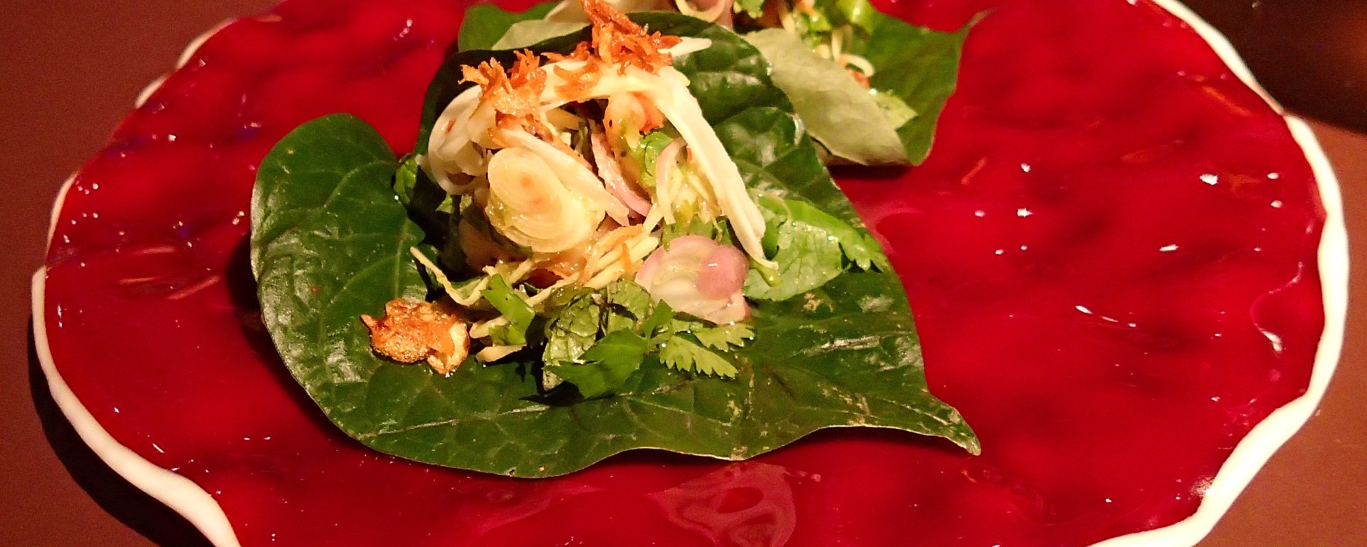 Aaharn provides an exemplary dining experience that showcases the creativity of Thai cuisine expert, David Thompson, and the talent of executive chef Dtoy. Dishes are inspired by long forgotten recipes and royal cuisine, with every one as delicious to eat as they are as stunning to gaze upon. Opt for the tasting menu, with fantastic wine pairings, for an enticing insight into balanced Thai cuisine at its finest. Personal favourites included marinated tiger prawns, young ginger and kaffir lime juice on betel leaves; crispy noodles with crab, beansprouts and pickled garlic; and stir fried snow peas with squid and ink paired with a fragrant relish of yellow beans, pork and prawns simmered in coconut milk served on a deep fried soft-yolk egg.