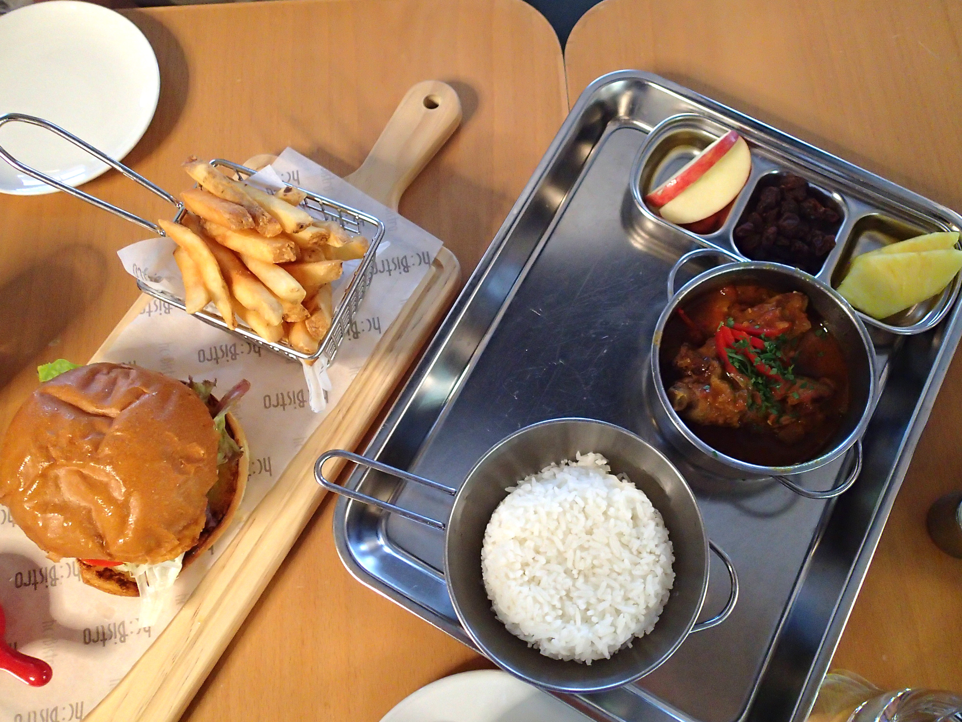 hc:Bistro was established by the Hong Chi Association, which provides support for people with intellectual disabilities. The bustling restaurant, located in the oldest preserved building, with a semi-open kitchen, serves international cuisine, with different set menus available for lunch, afternoon tea, and dinner. A signature is the spicy D Hall curry chicken served with rice or roti and a selection of condiments, so popular it often appears on all three menus.